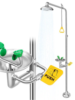 - Kích hoạt rửa mắt dễ dàng bằng tay đẩy