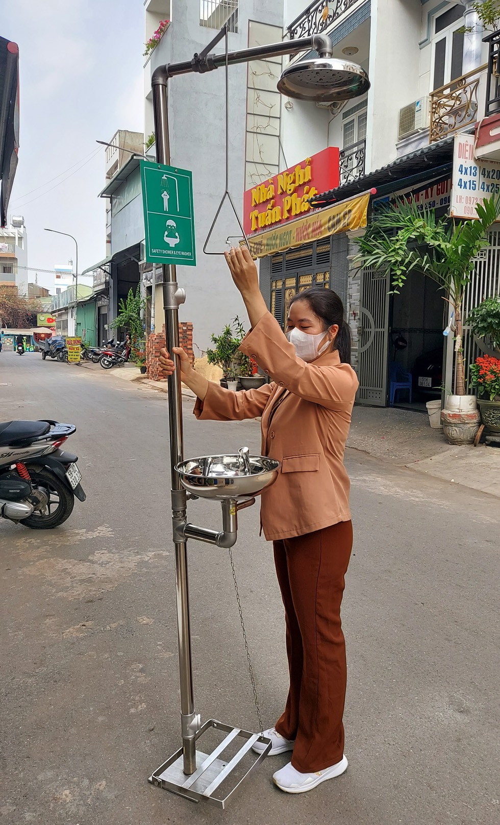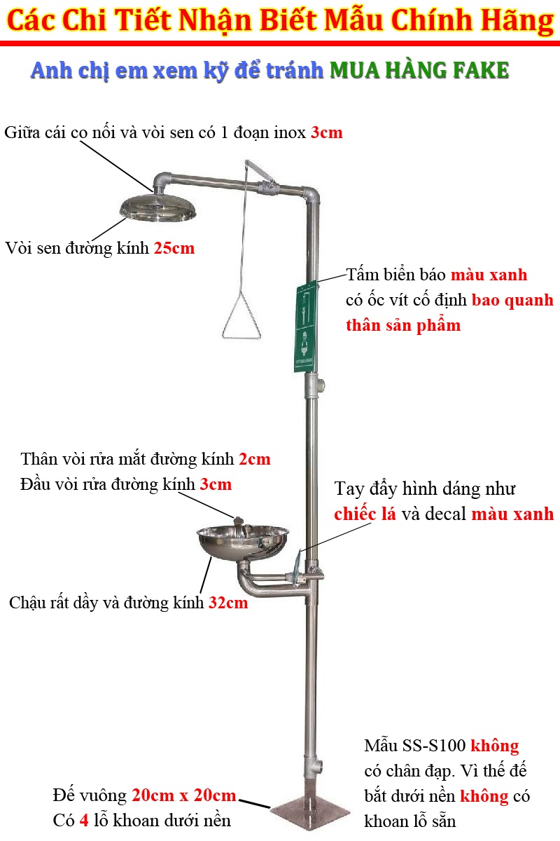 - Có chân đạp mở nước vòi rửa mắt. Chân đạp lớn gấp 3 lần các loại khác cho hiệu quả tuyệt đối